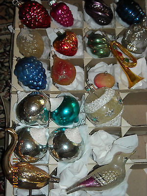 Title (ebay affiliate link): 19 Vintage Blown Glass Christmas Tree Ornaments--Birds, Fruit, Horn and More