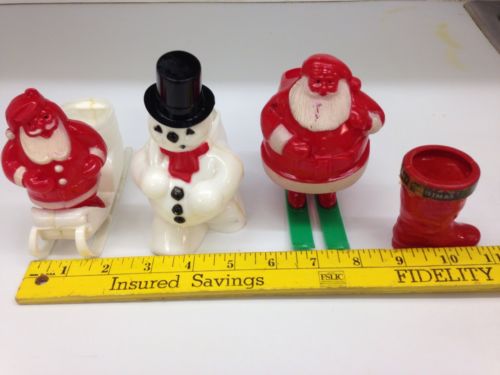 Title (ebay affiliate link): ANTIQUE PLASTIC FROSTY AND SANTA PLASTIC FIGURINES FROM THE 30-40s