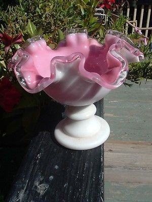 Title (ebay affiliate link): VINTAGE Art Glass Milk-Glass FENTON? Silvercrest? Ruffled PINK Compote Vase