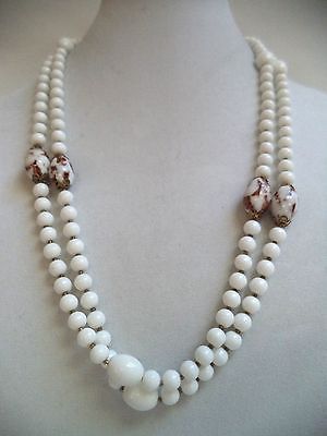 STUNNING VINTAGE ESTATE GOLD TONE GOLDFLUSS MILK GLASS BEADED NECKLACE!!! 6492Q