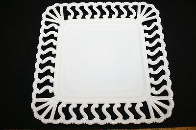 Vtg White Milk Glass Plate or Dish - Lace Border Pattern - 9 3/8" Sq.