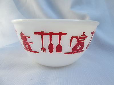 HAZEL ATLAS 5 3/4" SMALL KITCHEN AIDS/UTENSILS MIXING BOWL RED & WHITE MILKGLASS