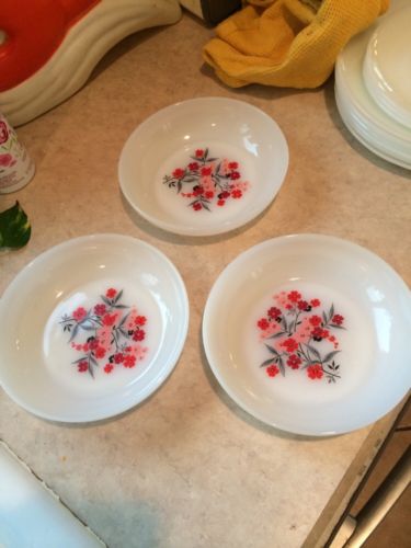 Title (ebay affiliate link): 3 Vintage Fire King Primrose (Milk Glass w/ Pink Red Flowers Bowls Soup Bowl