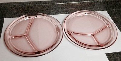 2 Pink Depression Glass Divided Grill Plates