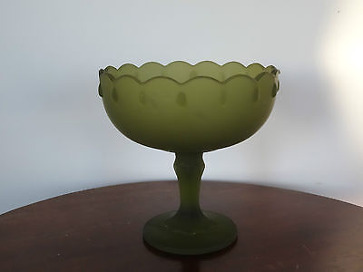 Vintage Green Depression Glass Pedestal Candy Dish Bowl LARGE Frosted FREE SHIP