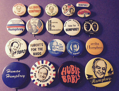 Title (ebay affiliate link): Nice Lot of 20 Hubert Humphrey (HHH) Political Pinback Buttons