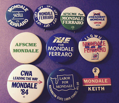 Title (ebay affiliate link): Good Group of 9 Mondale Pinback Buttons and 1 Tab
