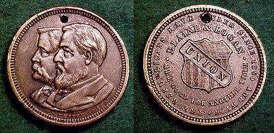 Title (ebay affiliate link): 1884 PRESIDENTIAL CAMPAIGN MEDAL....BLAINE & LOGAN...............NO RESERVE!