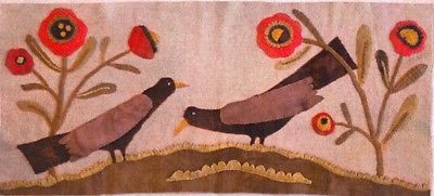 Title (ebay affiliate link): PRIMITIVE WOOL PENNY RUG PATTERN BIRDS FLOWERS BLACKBERRY PRIMITIVES