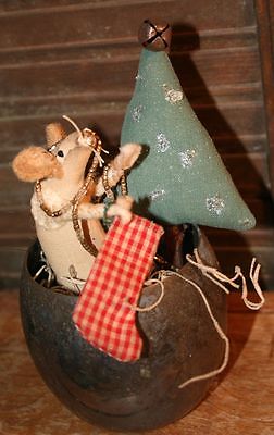 Primitive Mouse Decorating Christmas Tree Gathering Cupboard Tuck Stocking