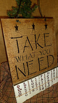 PRIMITIVE WOOD BOARD SIGN PLAQUE TAKE WHAT YOU NEED TAN CRACKLE COUNTRY DECOR