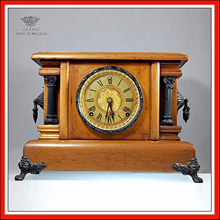 ANTIQUE VICTORIAN SESSION MANTEL BLACK COLUMNS CLOCK