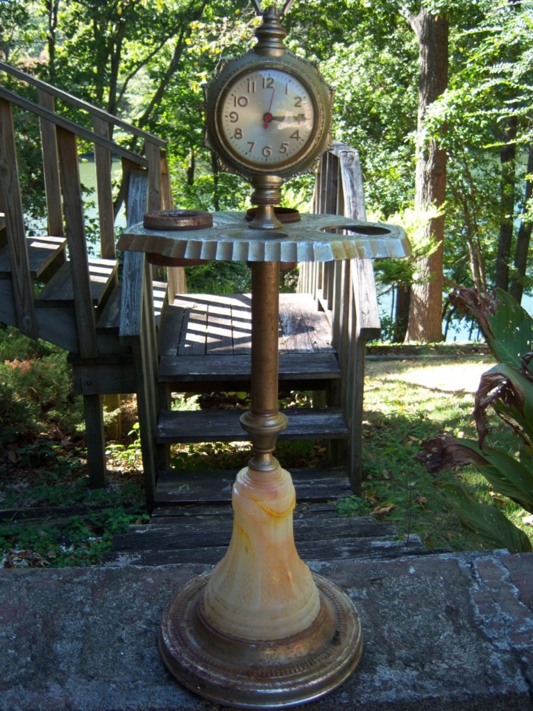 Title (ebay affiliate link): Antique Ashtray Clock Light Slag Glass Base Smoke Stand