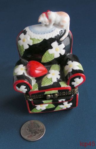 Title (ebay affiliate link): ceramic MARY ENGLEBREIT novelty TRINKET BOX cat on a vintage floral chair 1998