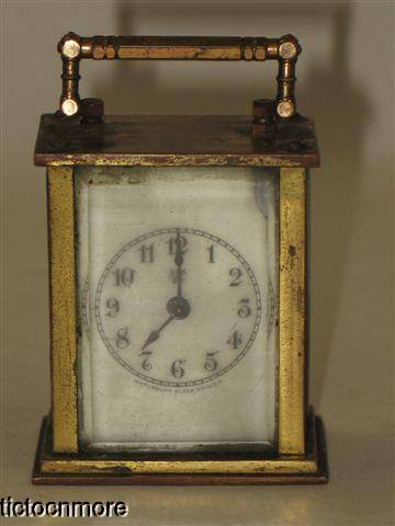 ANTIQUE WATERBURY MINI BRASS CARRIAGE SHELF CLOCK