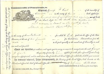 Title (ebay affiliate link): LARGE 1841 Pennsylvania LAND SURVEY ORDER dated "20th Feb. 1841"
