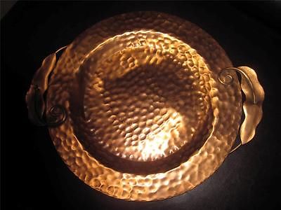 Wonderful VIntage Hammered Copper Round Tray~Leaf Handles