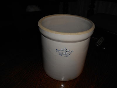 ANTIQUE 3 GALLON GLAZED CROCK U.S.A CROWN ROBINSON 10 1/2IN X 11 1/2IN.