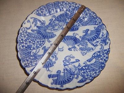 Title (ebay affiliate link): antique oriental dish blue and white scallop edge all over fans design 8 inch