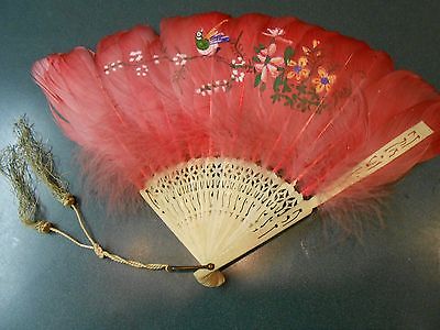 Title (ebay affiliate link): Old Antique Chinese Painted Feather Hand Fan, Pink, Bone? w/ tassel