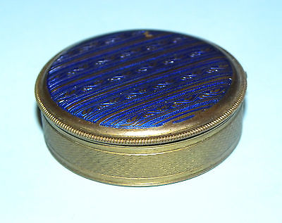 FINE ANTIQUE FRENCH GILT METAL GUILLOCHE ENAMEL POWDER BOX