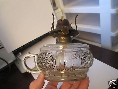 Blown 1883 Oil Lamp Embossed With Handle Metal Wick New York Pontiled Base Nice!