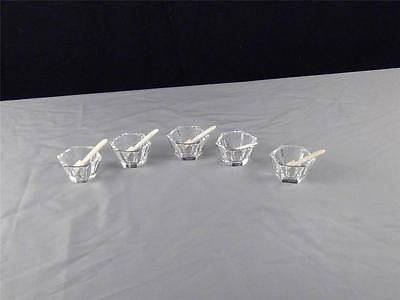 VINTAGE 1960'S SET OF 5 BACCARAT THICK CRYSTAL SALT BUTTER PATS W BONE SPOONS