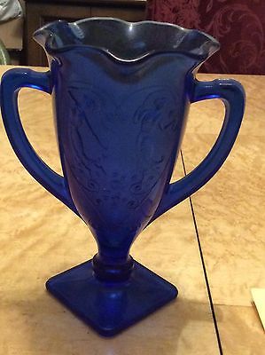 Vintage Art Nouveau Blue Glass Loving Cup Vase with Dancing Ladies