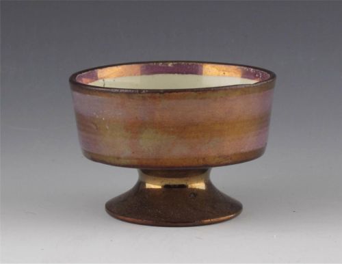 Title (ebay affiliate link): Sunderland Copper and Pink Lustre Striped Pearl Ware Pedestal Master Salt