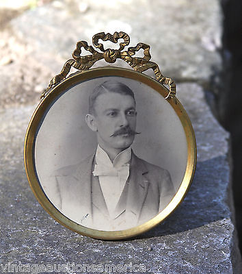 Round Metal 4in Diameter Portrait Picture Frame w/ Cabinet Card Vintage