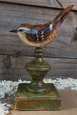 Hand Carved Bird (Wren) Perched on Antiqued Finial