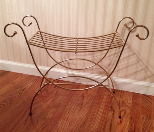 Title (ebay affiliate link): Vintage Metal Wire Curved Vanity Bench Seat Stool w/Fancy Scrolling & Arches