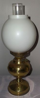 vintage brass OIL LAMP lantern and chimney milk glass shade