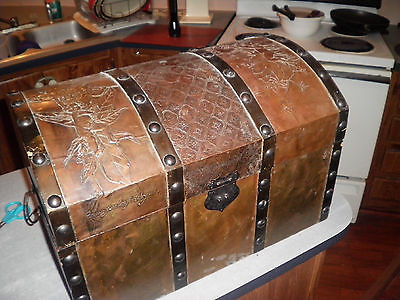ORNATE BRASS CLAD HUMPBACK CHEST LARGE SIZE 22X 15 VERY UNIQUE AGE UNKNOWN