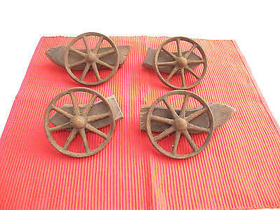 SET OF 4 CAST IRON ANTIQUE INDUSTRIAL CART WHEELS BABY CARRIAGE ? SMALL WAGON ?