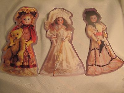 VTG 1996 VICTORIAN PAPER DOLL NOTE CARD USED AS CHRISTMAS ORNAMENT SET OF THREE