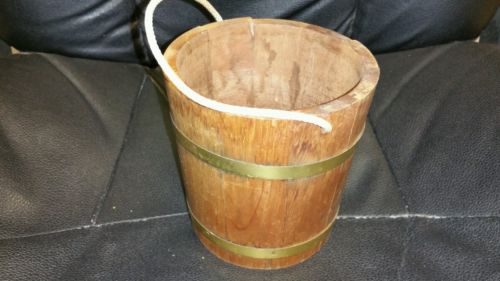 Title (ebay affiliate link): Vintage old wood oak bucket /pail with string handle gold straps