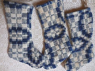 Primitive Vintage Blue Woven Coverlet Stocking Ornaments Christmas Decor Ornies