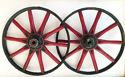 VINTAGE ANTIQUE OLD 19TH C. WAGON WHEELS PAIR LOT 10-1/2"