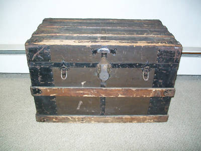 Title (ebay affiliate link): ANTIQUE VICRORIAN FLAT TOP SARATOGA STEAMER TRUNK 1800S