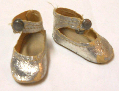 ANTIQUE SILVER HIGH TOP FRONT SNAP DOLL SHOES