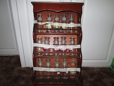 Title (ebay affiliate link): Antique Vintage Carved Kitchen Wooden Wall Curio Display Spice Rack w Bottles