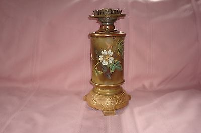 ANTIQUE VICTORIAN HAND PAINTED MILK GLASS W/SOLID BRASS/BRONZE LAMP BASE GD CON