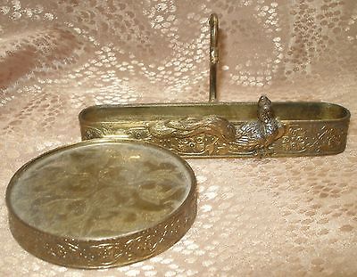 ARDALT BRASS COLORED TEA CUP & SAUCER DISPLAY HOLDER PEACOCK ON FRONT