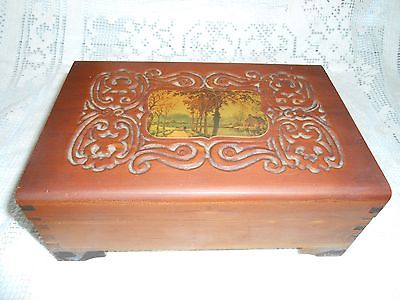 Vintage Dovetailed Embossed Scenic Lid Wooden Trinket Box