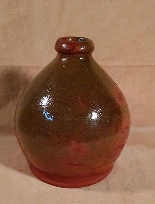Title (ebay affiliate link): ANTIQUE PRIMITIVE REDWARE COUNTRY OVOID SALT GLAZED POTTERY CROCK -HANDLE #402