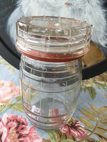 Title (ebay affiliate link): RARE Charming Antique 1905 Glass Lid Mason Jar 1905 Barrel Shaped Numbered