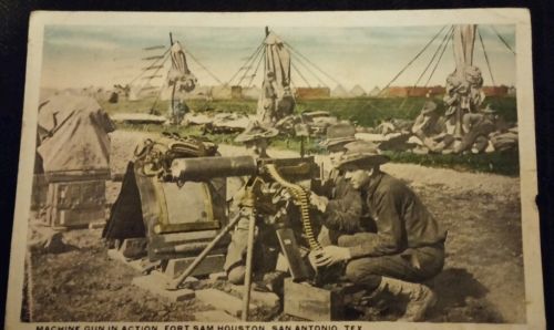 Title (ebay affiliate link): WWI postcard "Machine Gun in Action. Fort Sam Houston. San Antonio Tex" 1917