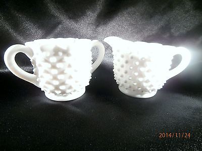 Fenton Milk Glass Hobnail Ruffled Sugar Bowl & Creamer