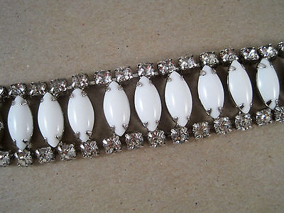 Vintage Signed GALE WHITE MILK GLASS CLEAR RHINESTONE BRACELET